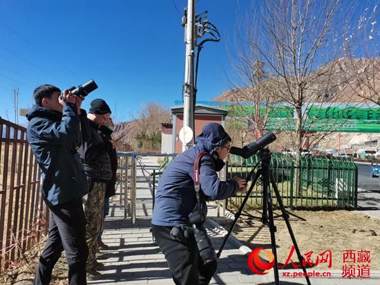 在拉魯濕地拍鳥。 李海霞 攝