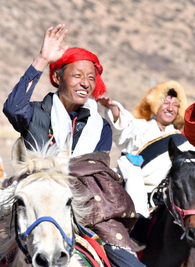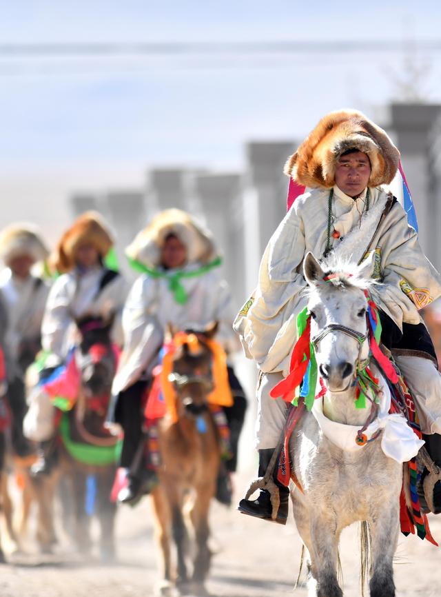 2月12日,拉薩市當(dāng)雄縣牧民騎馬去鄰村拜年。 新華社記者 覺(jué)果 攝當(dāng)天是藏歷鐵牛新年和農(nóng)歷春節(jié)。雙節(jié)共慶,帶來(lái)的是雙倍的歡樂(lè),西藏各地群眾以不同形式慶祝新年,祈愿美好生活。