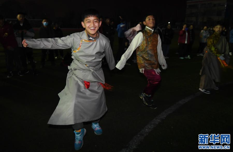 12日晚,夜幕降臨,華燈初上。伴隨著歡快的音樂聲,武漢西藏中學(xué)操場上,學(xué)生們變換著各種舞姿歡慶藏歷新年。