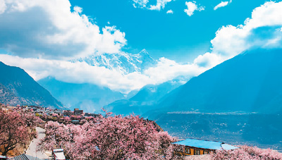 南迦巴瓦峰下桃花盛開。新華社記者 侯捷攝