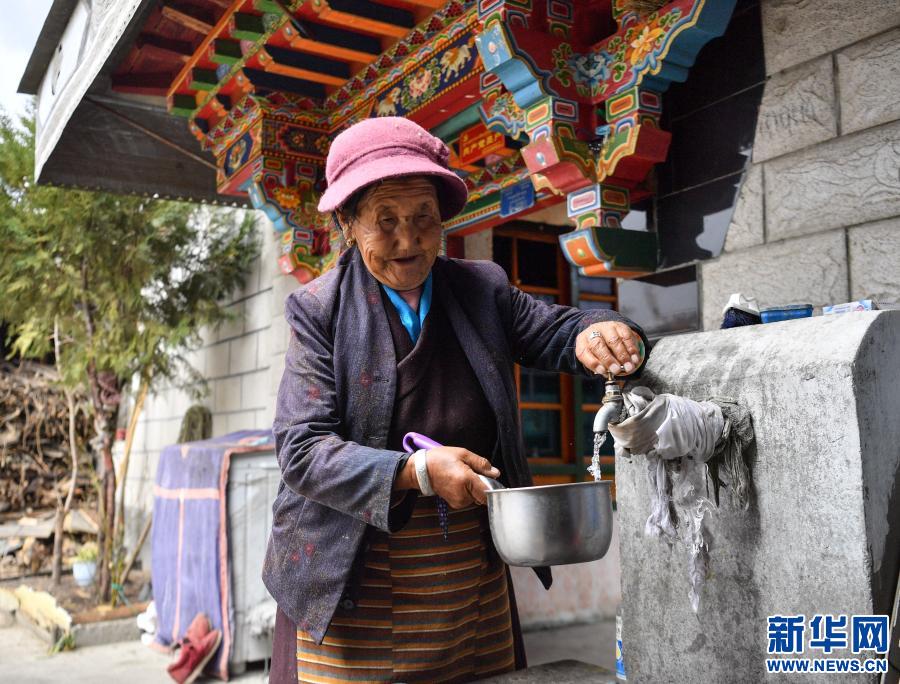 達(dá)娃在自己家中接自來(lái)水(3月15日攝)。新華社記者 晉美多吉 攝