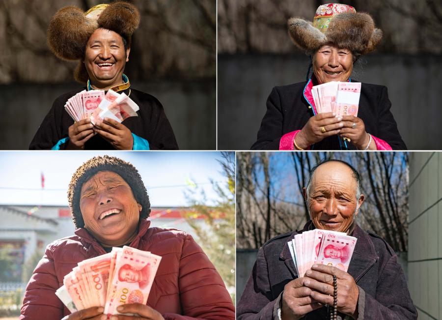 2月9日,領到分紅的克松社區(qū)居民興高采烈。(新華社記者普布扎西攝)