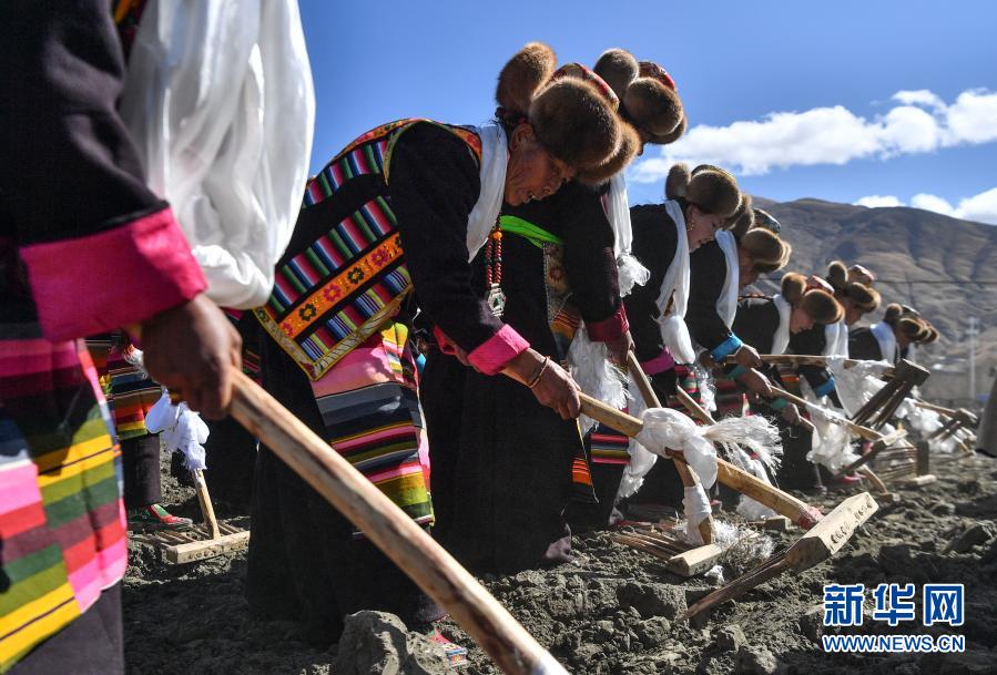 身著盛裝的西藏山南市乃東區(qū)克松社區(qū)居民在進行春耕儀式(3月16日攝)。新華社記者 晉美多吉 攝