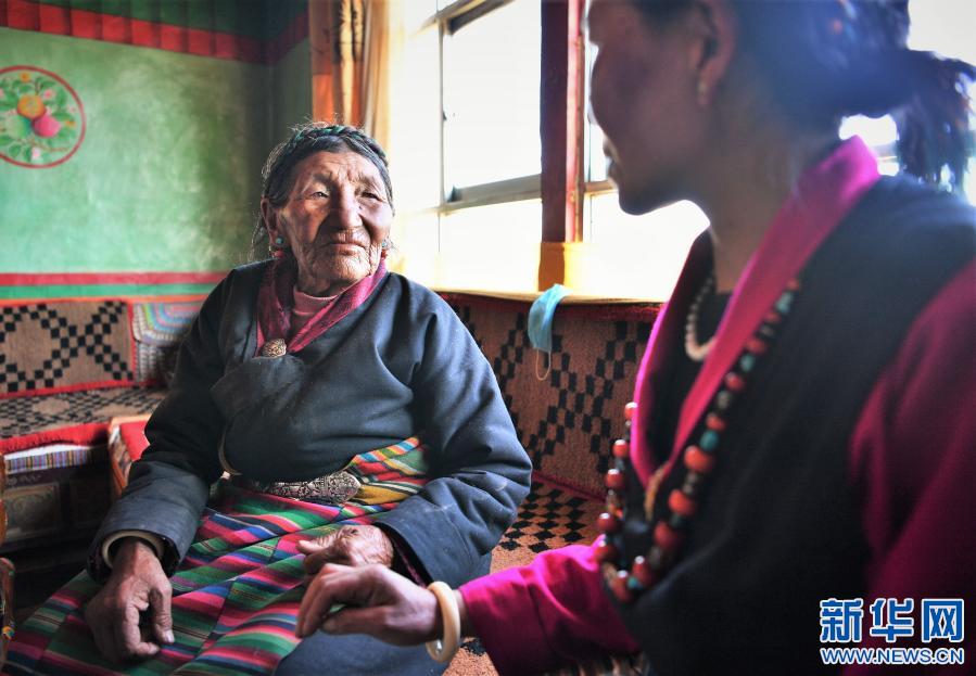 巴桑和女兒在聊天(2月27日攝)。新華社記者 孫非 攝