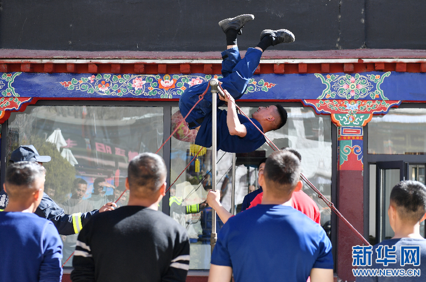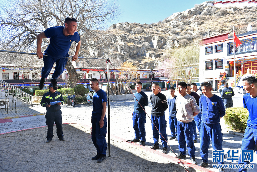 布達(dá)拉宮消防救援大隊(duì)隊(duì)員開展例行體能測試(3月4日攝)。新華社記者 孫瑞博 攝