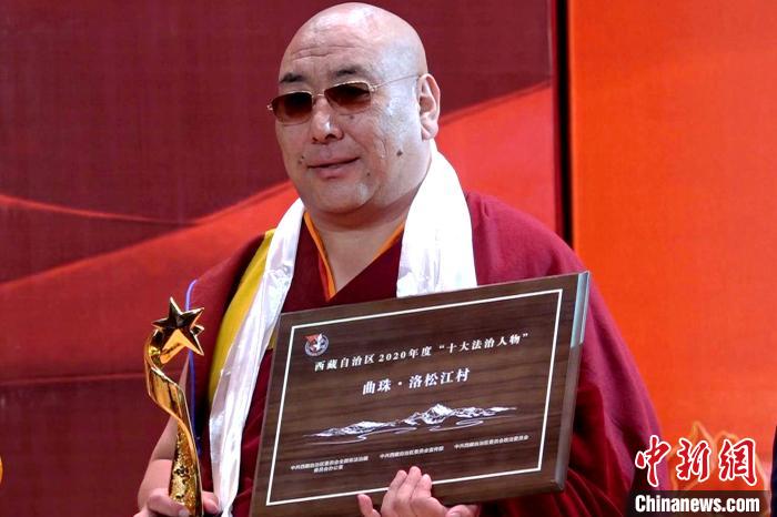 昌都市察雅縣向康寺民管會主任、活佛曲珠·洛松江村是當晚獲獎者中唯一一位宗教人士。