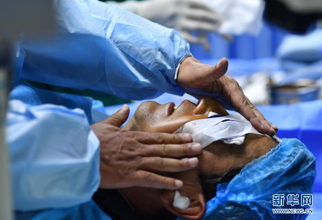 3月24日,西藏拉薩光明眼科康復(fù)診療院醫(yī)生在給白內(nèi)障患者實(shí)施復(fù)明手術(shù)。新華社記者 覺果 攝