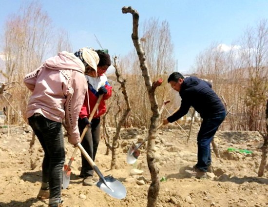 參與栽植活動(dòng)的堅(jiān)參次仁說:“這么大面積種植桃樹,在普蘭歷史上還是第一次,真心希望全部能成活。等以后開花結(jié)果了,我們就能吃上自己種的桃子了。”
