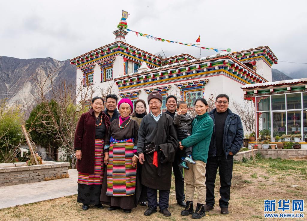 舊社會(huì),昂旺尼瑪住的是木頭搭建的簡(jiǎn)易棚子,夏天漏雨,冬天漏風(fēng)。如今,昂旺尼瑪住在藏式小別墅,享受著四世同堂的天倫之樂。