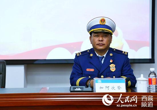 拉薩市消防救援支隊(duì)副支隊(duì)長(zhǎng)加阿次登講話。人民網(wǎng) 李海霞攝