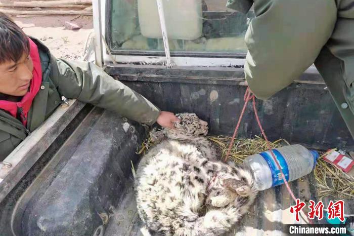 圖為三次進入西藏阿里牧民家的肇事雪豹被捕獲。西藏改則縣林業(yè)和草原局 供圖