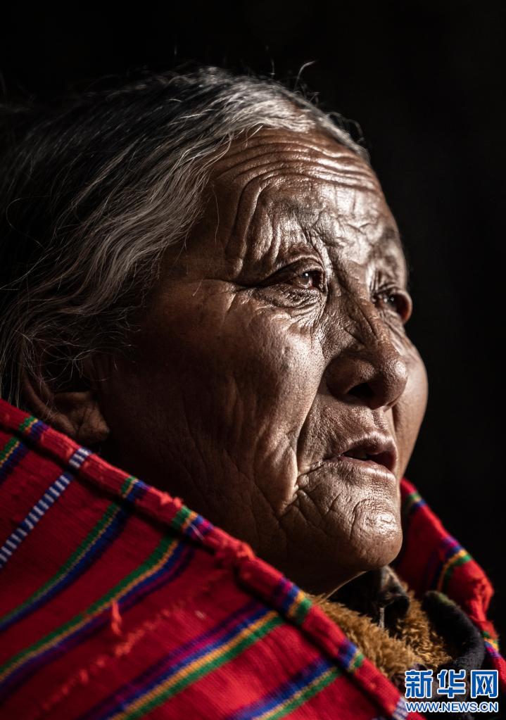 才旦拉姆老人的肖像(4月27日攝)。新華社 貢覺(jué)群培 攝