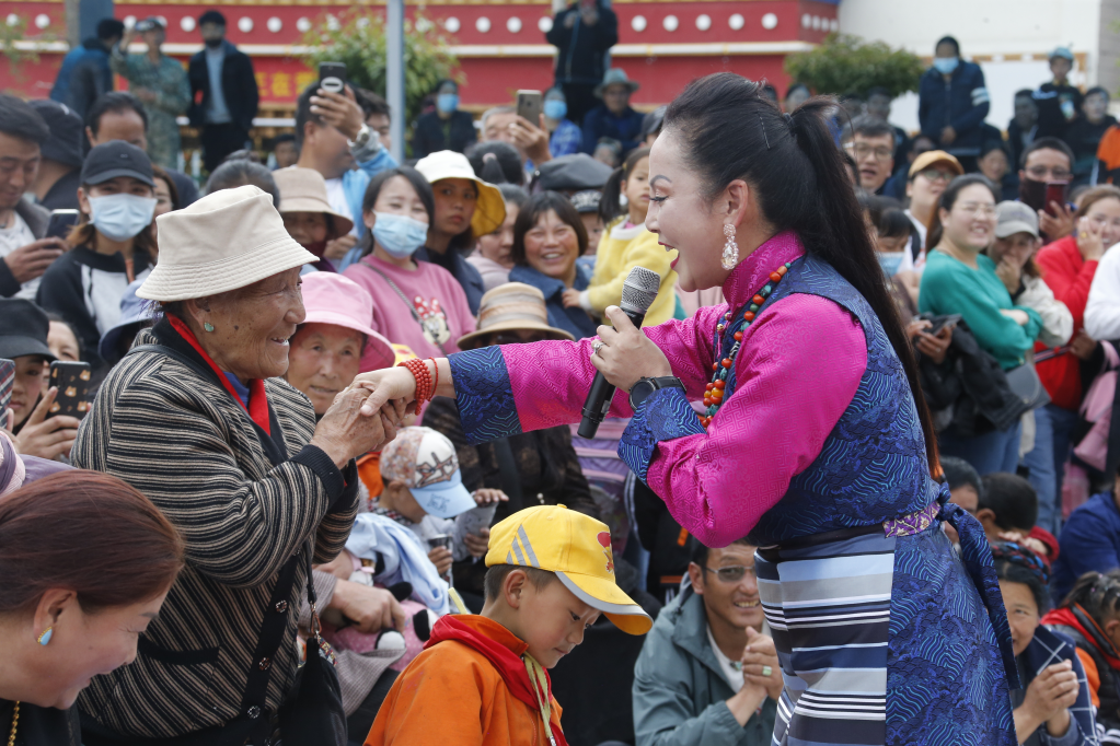 德西美朵在下鄉(xiāng)演唱時(shí)和群眾互動(dòng)。新華社發(fā) (受采訪(fǎng)者供圖)