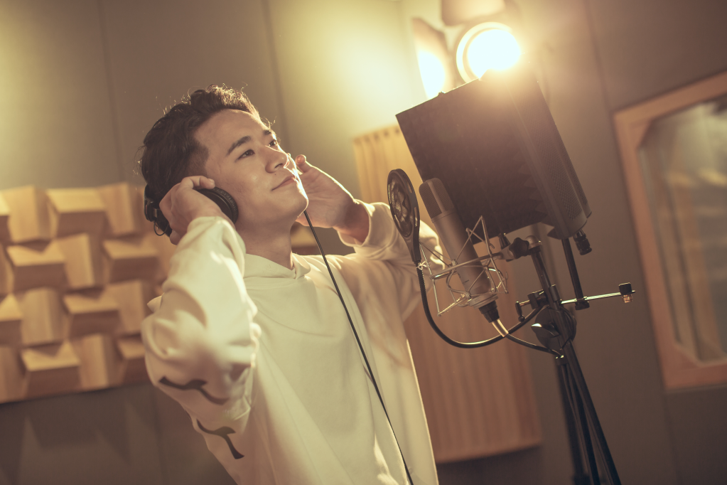 巴鄧頓珠在錄音棚錄制歌曲。新華社發(fā) (受采訪(fǎng)者供圖)
