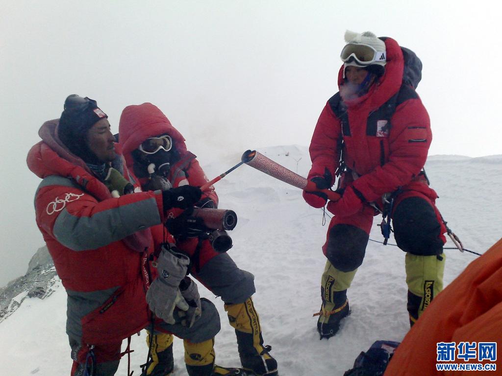 在直播畫面里,人們看到有的隊員脫下了羽絨手套,徒手操作儀器,這在峰頂極有可能造成凍傷。為了不妨礙讀數(shù),藏族隊員普布頓珠甚至沒有佩戴氧氣面罩,在珠峰峰頂無氧工作。