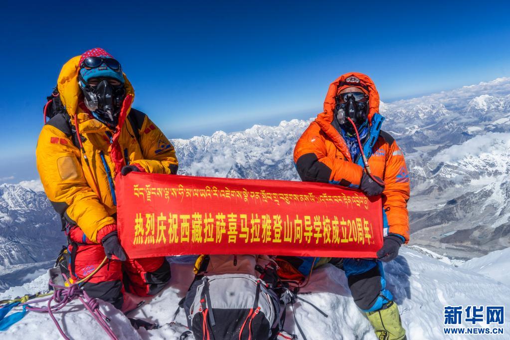2019年5月24日,西藏拉薩喜馬拉雅登山向?qū)W(xué)校的向?qū)冊谥榉屙斏蠎c祝學(xué)校成立20周年。新華社發(fā)(扎西次仁攝)