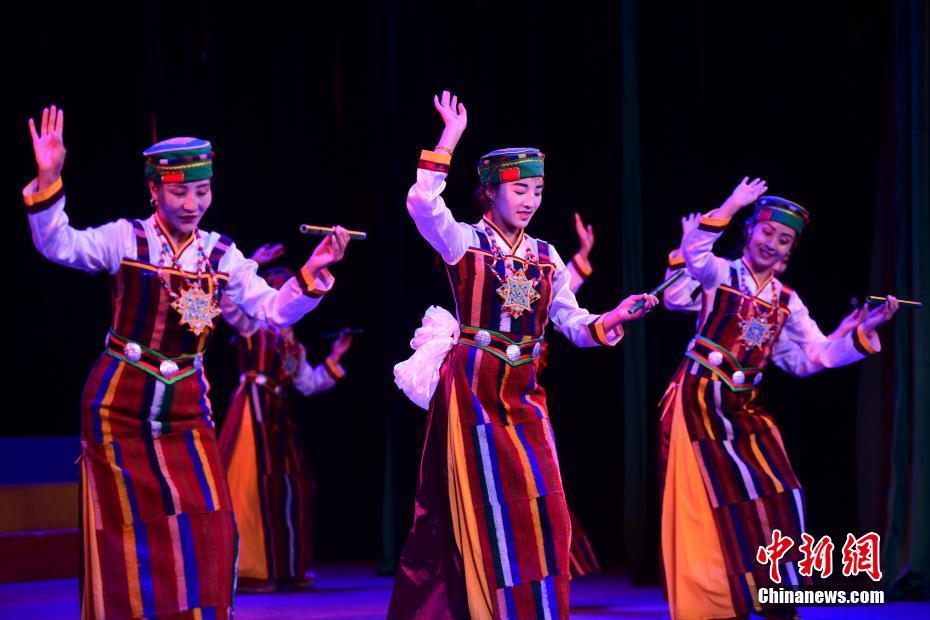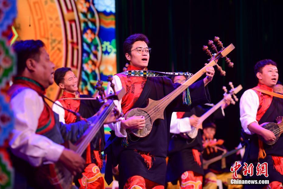 6月12日,2021年“文化和自然遺產(chǎn)日”西藏非遺展演展示系列活動在拉薩舉行?;顒蝇F(xiàn)場融入了文藝演出、非遺展演、非遺產(chǎn)品展銷等內(nèi)容,市民游客可親身體驗非遺產(chǎn)品的制作過程。圖為在西藏自治區(qū)群眾藝術館演出的扎念彈唱《普伊桑林貢巴》?!?中新社記者 貢嘎來松 攝
