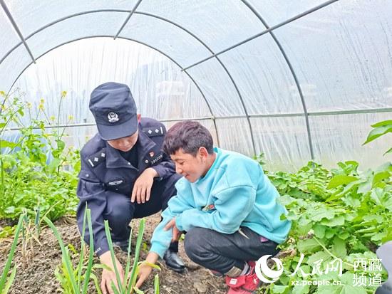 “他對我們可好了。”說起這位警察叔叔,旺姆的哥哥巴旦一臉笑容。巴旦想在自家院里種菜,種植專業(yè)出身的沈朋二話不說就幫他們把大棚建了起來,還手把手教種植知識。
