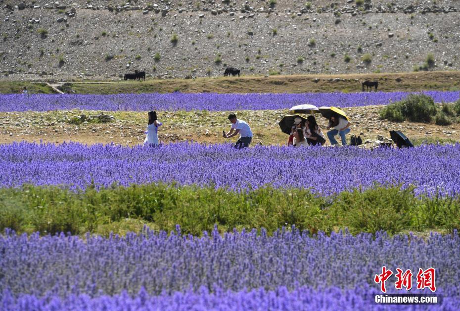 西藏百畝薰衣草花海綻放引游人