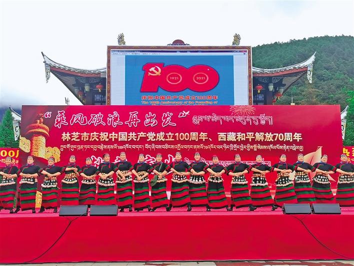 近日,“乘風(fēng)破浪再出發(fā)”——西藏自治區(qū)林芝市慶祝中國共產(chǎn)黨成立100周年、西藏和平解放70周年獻(xiàn)禮演出在福建公園隆重舉行。演出通過歌舞、情景表演、相聲、團(tuán)體操等形式,表達(dá)了各族人民感黨恩、聽黨話、跟黨走的真摯情感?!?/p>