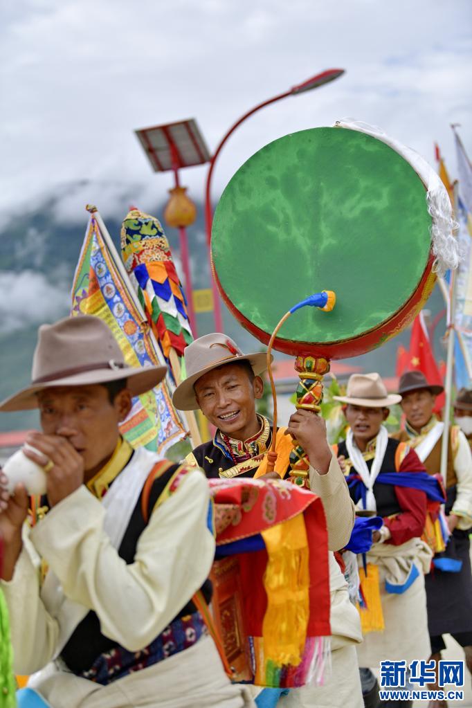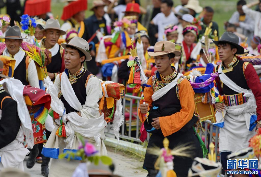 當(dāng)日,易地扶貧搬遷新村——西藏山南市加查縣冷達鄉(xiāng)共康村的村民們身著盛裝歡度“望果節(jié)”?!巴?jié)”是西藏農(nóng)區(qū)在青稞麥田成熟之際祈求豐收的節(jié)日,據(jù)傳有1500多年的歷史,因各地青稞成熟時間不一,“望果節(jié)”時間也各異。