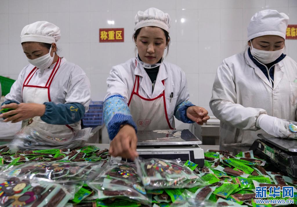 在西藏奇圣土特產(chǎn)品有限公司生產(chǎn)車(chē)間內(nèi),工作人員在分裝牦牛肉(2019年12月31日攝)。新華社記者 孫非 攝