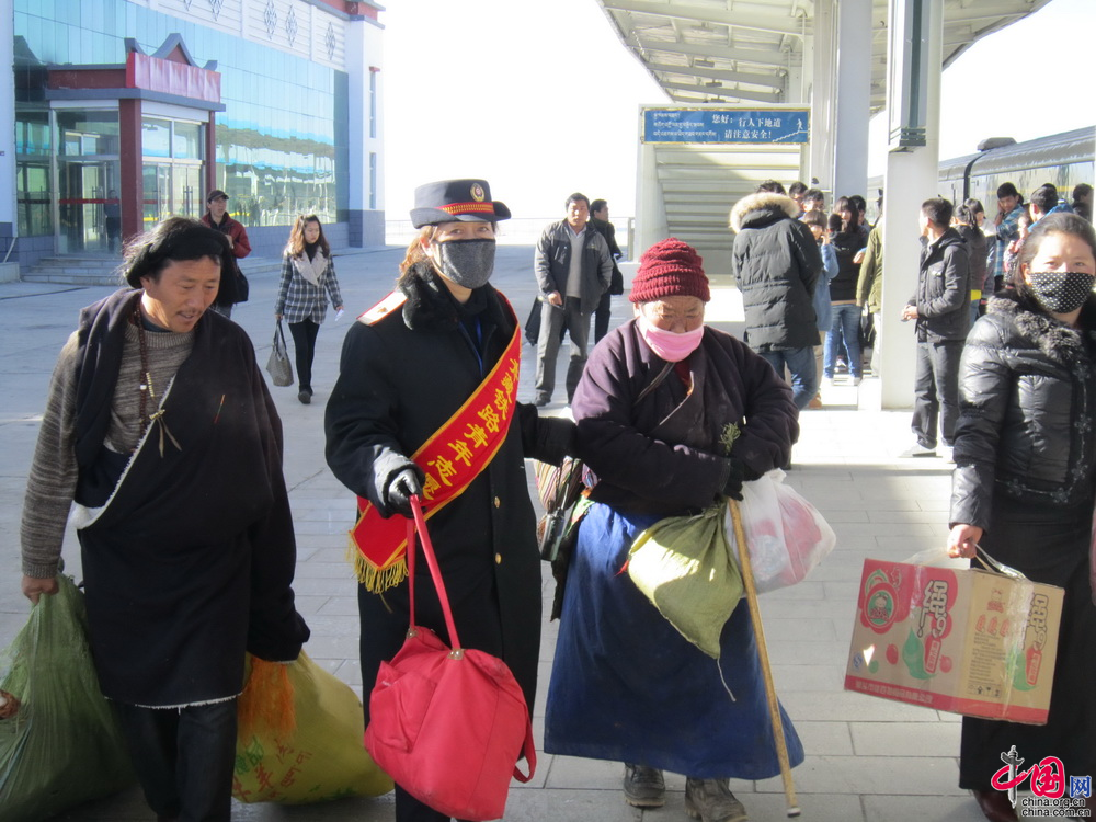 2012年那曲站黨支部秉承“以人為本、旅客至上”的服務理念,以格?;ǖ钠焚|(zhì)為內(nèi)涵,冠名創(chuàng)建了“格?;ā狈张_。中國網(wǎng)記者 鄭亮攝