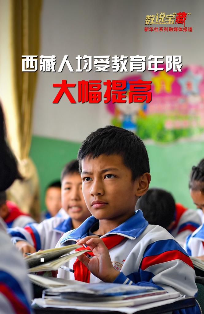 70年間,西藏通過完善現(xiàn)代教育體系、實行15年公費教育等多種舉措,文盲率顯著下降,人均受教育年限得到大幅提高?!段鞑睾推浇夥排c繁榮發(fā)展》白皮書顯示:目前西藏新增勞動力人均受教育年限提高到13.1年。