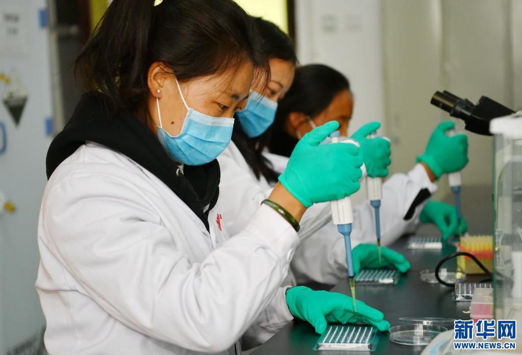 西藏職業(yè)技術(shù)學(xué)院2020屆首屆區(qū)外就業(yè)畢業(yè)生在做實驗(2020年4月9日攝)。 新華社記者 張汝鋒 攝