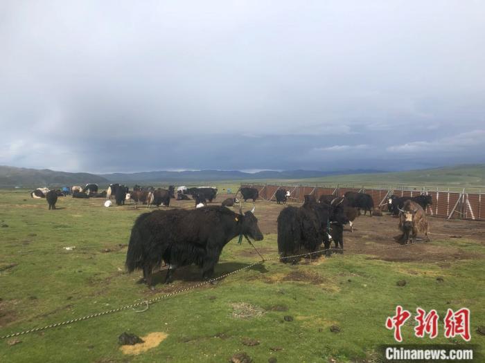 色尼區(qū)嘎爾德畜牧業(yè)示范基地上的牦牛。中新網(wǎng)左宇坤 攝