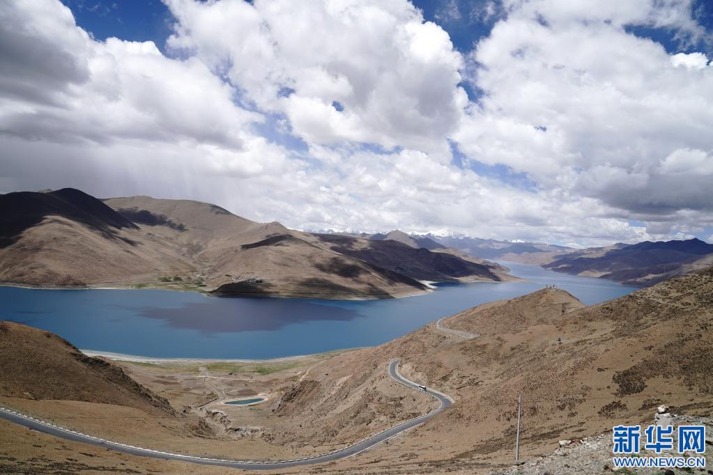 地處山南市浪卡子縣境內(nèi)349國道邊的羊湖風(fēng)景區(qū)(2021年6月6日攝)。新華社記者 劉洪明 攝