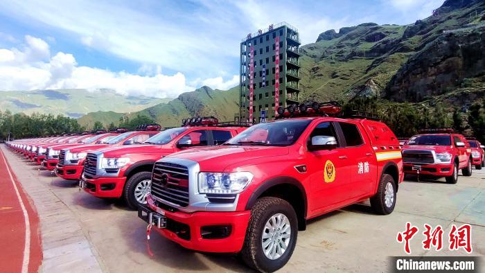 圖為應(yīng)急管理部消防救援局支援西藏自治區(qū)消防救援隊(duì)伍的91輛多功能勤務(wù)保障車及隨車器材。貢桑拉姆 攝