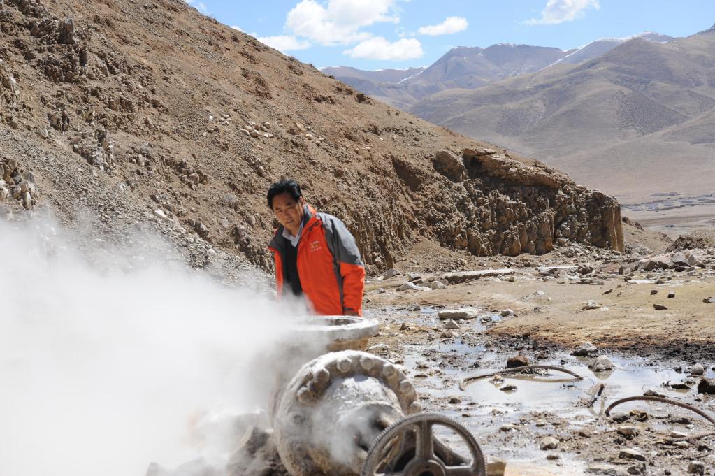 中國(guó)工程院首位藏族院士多吉在觀察羊八井地?zé)豳Y源(2010年9月6日攝)。新華社發(fā)