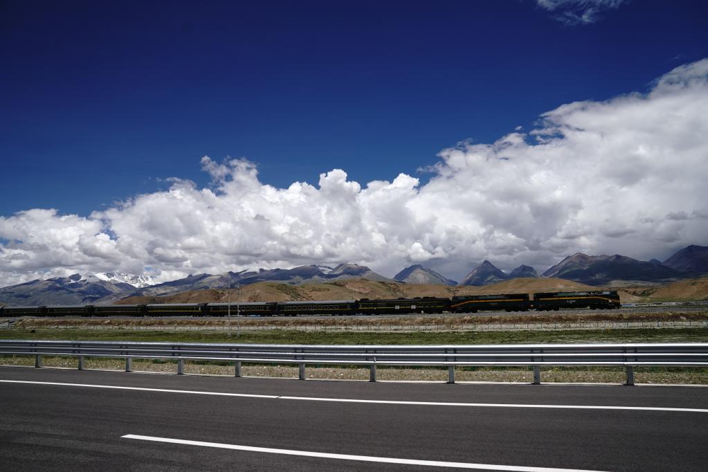 列車(chē)行駛在青藏鐵路拉薩市當(dāng)雄縣境內(nèi)(2021年6月28日攝)。新華社記者劉洪明 攝