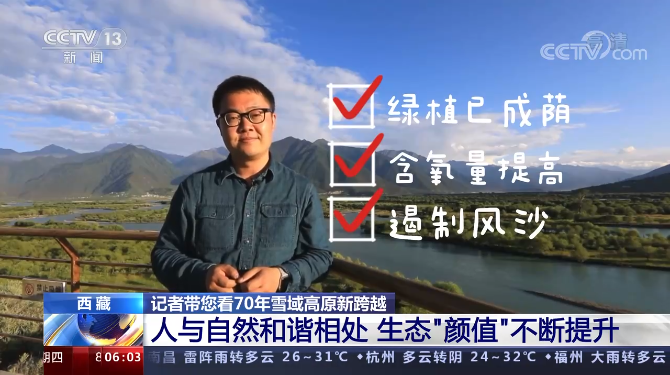 總臺央視記者 馬力:在西藏,超過八成的人口都集中在雅魯藏布江、怒江、拉薩河等“兩江四河”流域。2016年開始,西藏展開了“兩江四河”流域集中連片植樹造林工程,涉及全區(qū)所有地市。經(jīng)過5年的根植,西藏大江大河沿線已經(jīng)被31萬畝的綠植環(huán)繞,在70多萬名生態(tài)護林員精心呵護下,綠植已經(jīng)成蔭,空氣含氧量提高了,風沙也得到了有效的遏制。