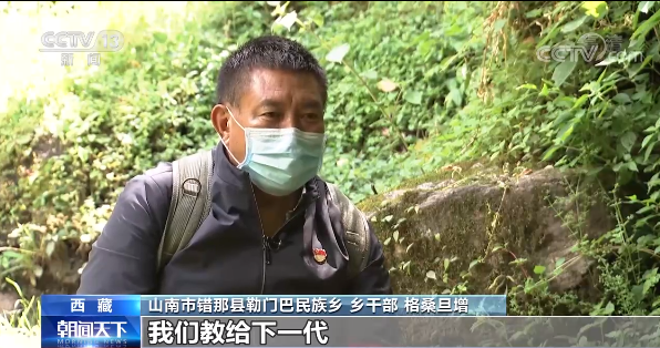 西藏山南市錯(cuò)那縣勒門巴民族鄉(xiāng)鄉(xiāng)干部 格桑旦增:必須帶的是國旗,在我們的國土上要插上我們的國旗,還有要帶刀子,路不好走,雜草,還有蛇,還有狗熊、野豬都有。