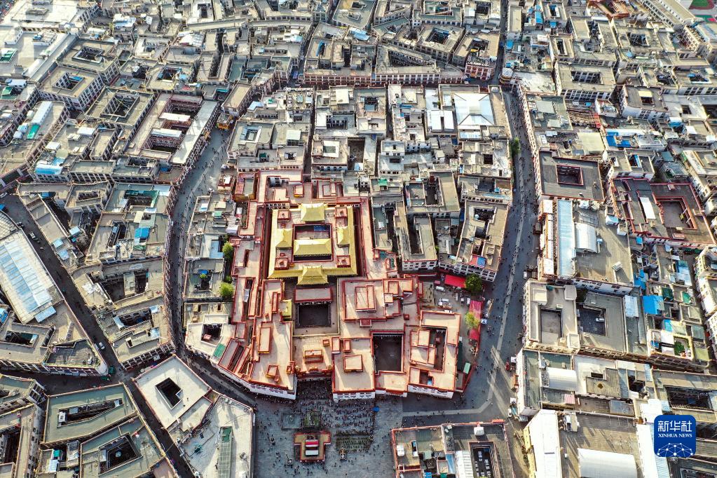 鳥(niǎo)瞰拉薩八廓街(2019年8月10日攝,無(wú)人機(jī)照片)。新華社記者 普布扎西 攝