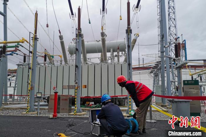 工作人員對變電設(shè)備進行檢修。國網(wǎng)西藏電力有限公司 供圖