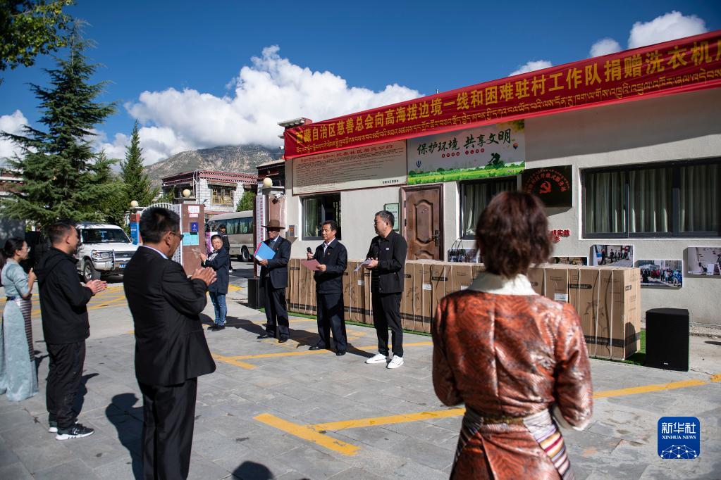 當(dāng)日,西藏自治區(qū)慈善總會(huì)攜手愛心企業(yè)在拉薩舉行捐贈(zèng)儀式,向拉薩、山南、日喀則、那曲等地50個(gè)高海拔、邊境一線駐村工作隊(duì)捐贈(zèng)全自動(dòng)洗衣機(jī)50臺(tái),幫助駐村隊(duì)員改善生活條件,引導(dǎo)社會(huì)慈善力量助力鄉(xiāng)村振興。