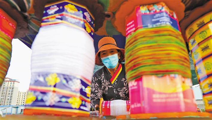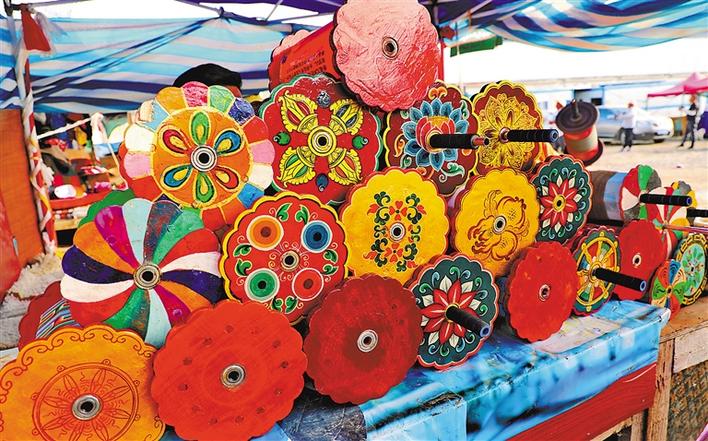 在拉薩河谷售賣風箏的攤位中,拉薩風箏制作技藝自治區(qū)級代表性傳承人普窮的生意最紅火,經常有客人一買就是幾十只風箏。
