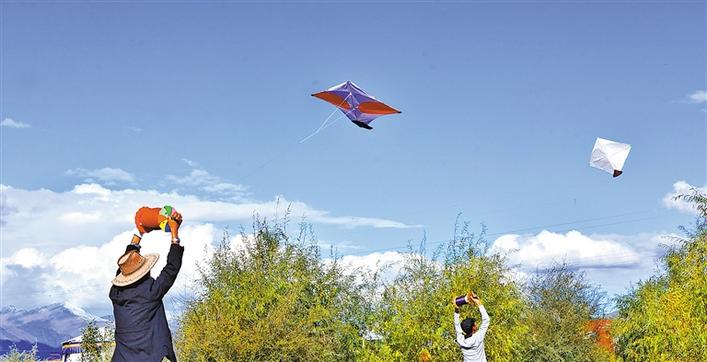 在拉薩放風箏不比誰放得高,也不比誰的風箏扎得漂亮,拉薩風箏的放飛技巧體現(xiàn)在可以“斗”,最后風箏斷線、風箏飄走者為敗。