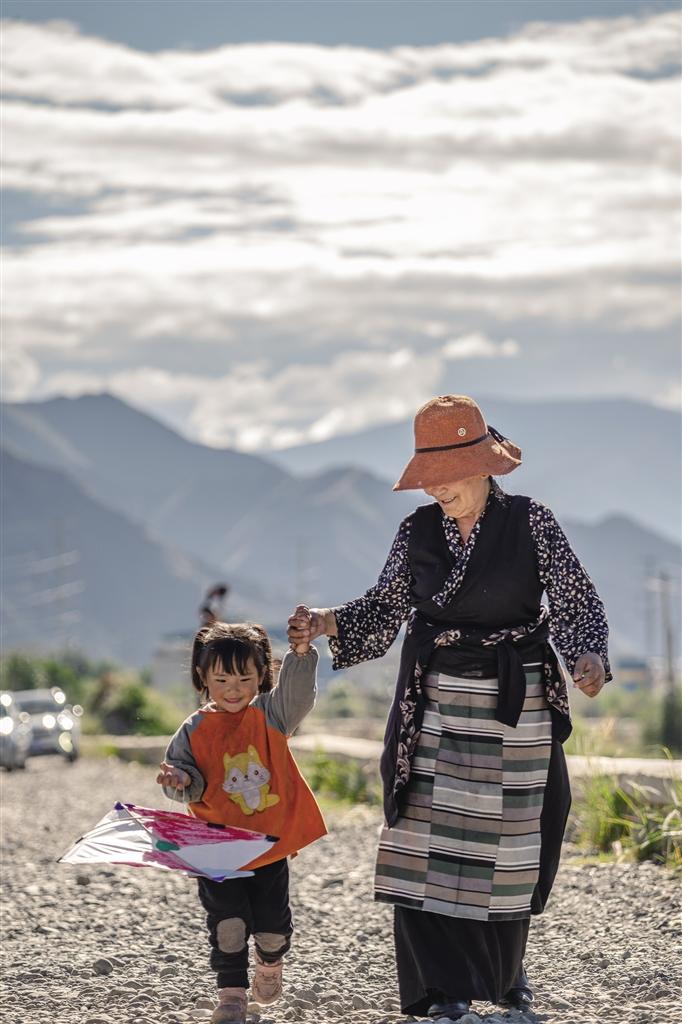 每年秋日,人們聚集在拉薩河畔,享受斗風(fēng)箏帶來的各種樂趣。除了放風(fēng)箏外,撿風(fēng)箏也是很開心的事,被割斷線的風(fēng)箏,誰撿到就歸誰。因此,一些孩子看到天上飄落下來的風(fēng)箏便趕緊跑過去撿,有時(shí)大人也會(huì)參與其中,好不熱鬧,直至傍晚時(shí)分人們才依依不舍地漸漸散去。