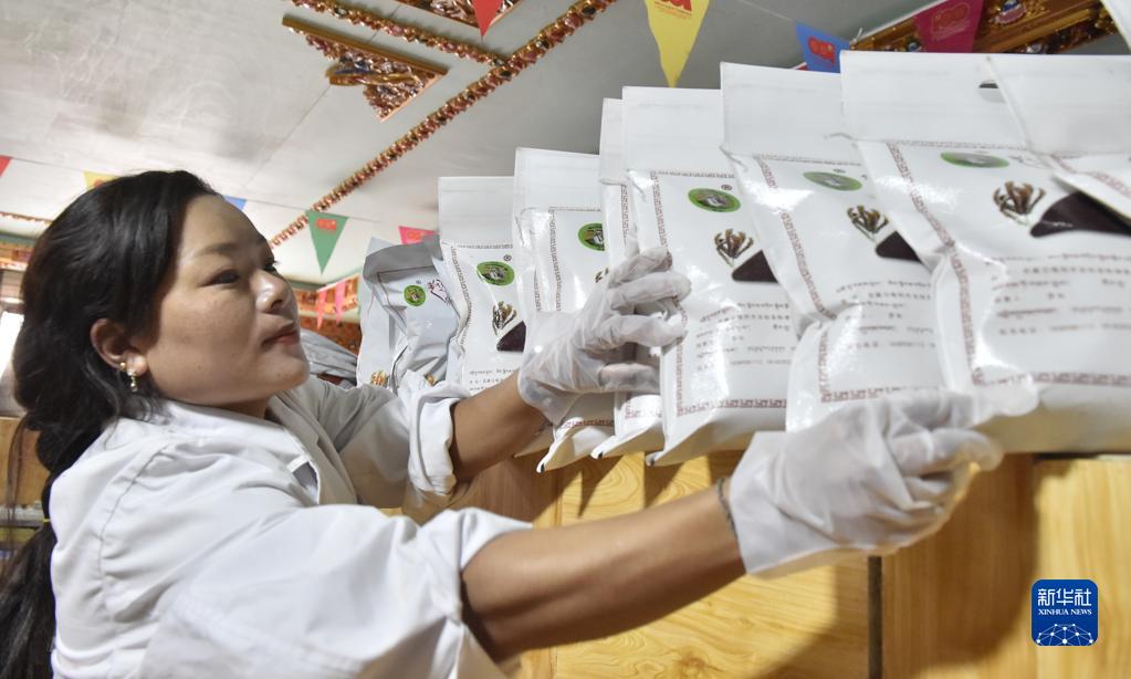 9月15日,西藏定結(jié)縣陳塘鎮(zhèn)居民久松在打包雞爪谷糌粑。新華社發(fā)(索朗羅布 攝)