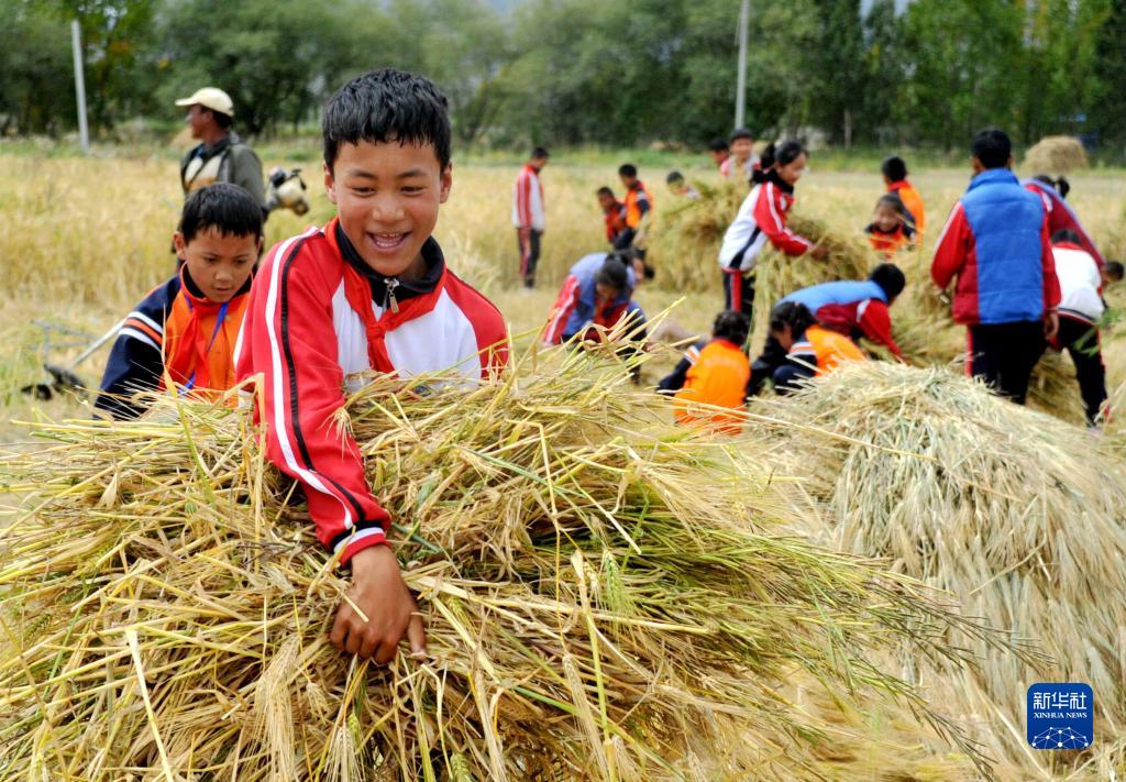 時(shí)下正值青稞成熟的季節(jié),西藏日喀則市上海實(shí)驗(yàn)學(xué)校40余名師生來(lái)到日喀則市甲措雄鄉(xiāng),參與當(dāng)?shù)氐那囡崭?,把“思政課”上在青稞地里。學(xué)生們?cè)趯?shí)踐中體會(huì)勞動(dòng)的艱辛,在收獲中感受勞動(dòng)的快樂(lè)。