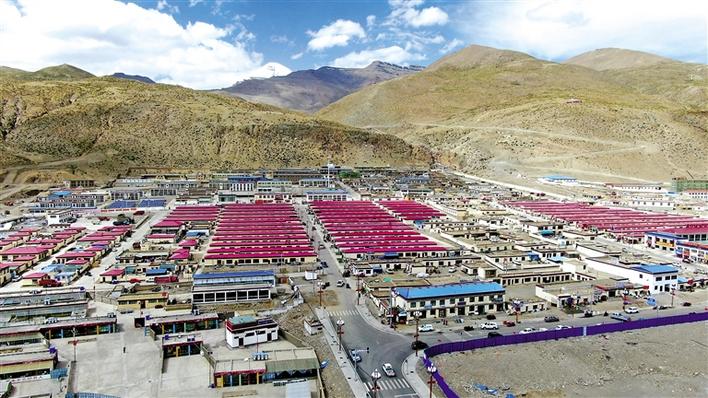 在這座現(xiàn)代化的小區(qū)里,一排排黃色的藏式民居整齊劃一,迎風招展的五星紅旗格外醒目,小區(qū)周邊學校、醫(yī)院、農(nóng)貿(mào)市場等配套設施一應俱全。沐浴著和煦的陽光,孩子們在巷子里奔跑嬉鬧,老人們圍攏在一起拉家常。