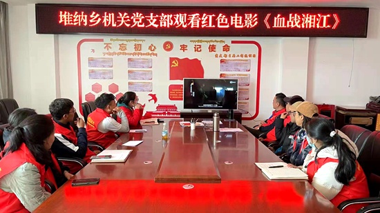 堆納鄉(xiāng)新時(shí)代文明實(shí)踐所組織黨員志愿服務(wù)隊(duì)觀看紅色電影。