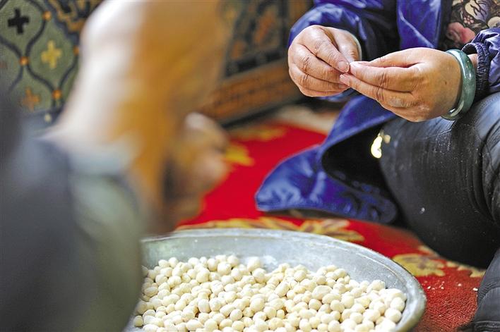家住拉薩市城關(guān)區(qū)嘎瑪貢桑社區(qū)的達瓦頓珠一家正不亦樂乎地做“古突”。丹增群培 唐斌 攝