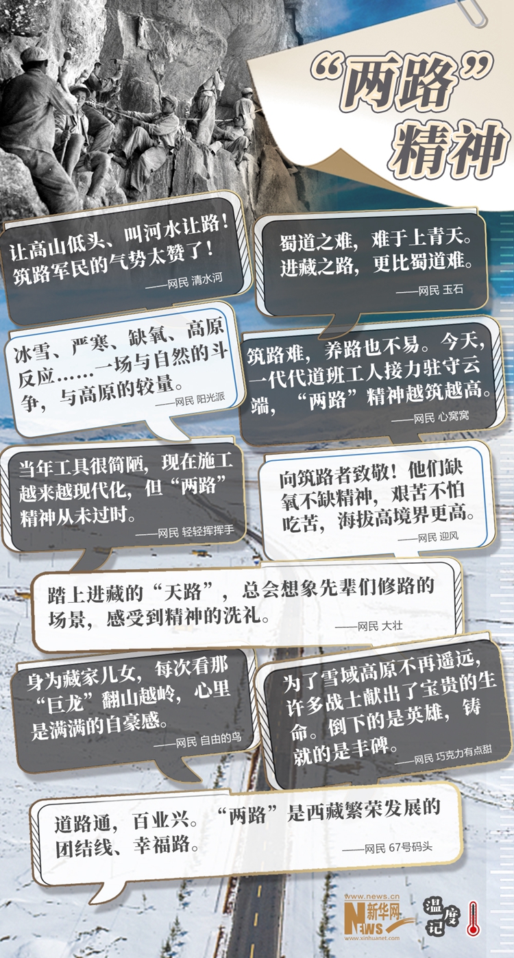 “天路”巍峨,精神閃光。當(dāng)雪域高原換了人間,新一代建設(shè)者正接過接力棒,在新時代續(xù)寫著新的傳奇?!敖裉?,一代代道班工人接力駐守云端,‘兩路’精神越筑越高”,正如網(wǎng)民所說,無論過去、現(xiàn)在和將來,“兩路”精神都是西藏各族人民建設(shè)幸福家園的力量源泉和精神動力,也必將激勵中華兒女為了更加美好的明天繼續(xù)奮斗、前行。(文字:馬若虎 海報設(shè)計:王曄)