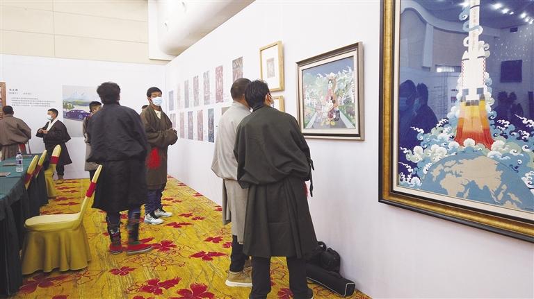 神舟十三的成功發(fā)射,標(biāo)志著中國進入世界航天強國。據(jù)了解,此次新唐卡展便借用其美好的寓意,將主題定為“一飛沖天——神十三”,體現(xiàn)了新時代呼喚新唐卡、新唐卡展現(xiàn)新氣象、新氣象表達新融合的美好愿景,以及漢藏藝術(shù)家用丹青形式守衛(wèi)中國夢,鑄牢中華民族共同體意識所作出的貢獻。