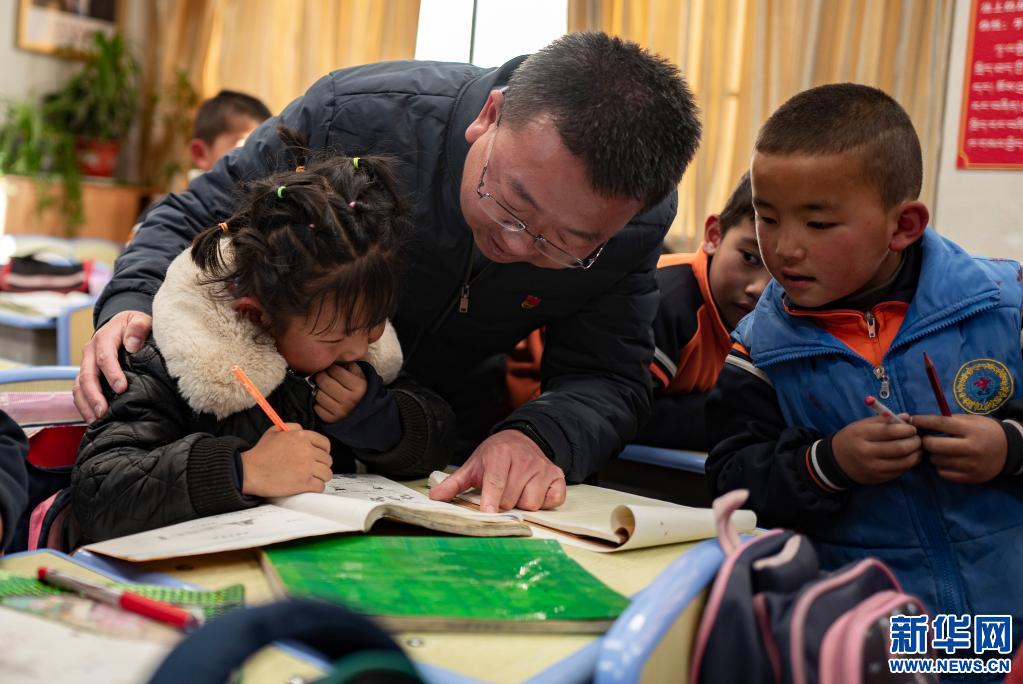 援藏教師潘杰送學(xué)生放學(xué)(12月9日攝)。